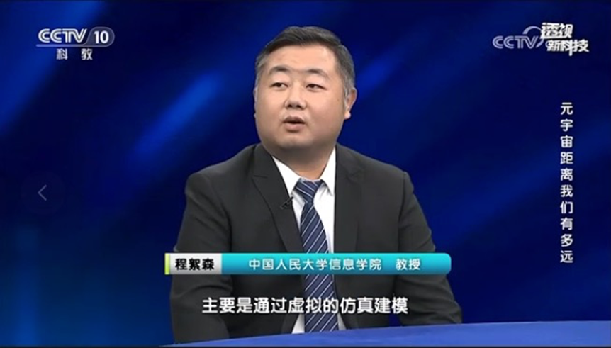 2023年11月19日晚,中央电视台科教频道《透视新科技》播出了“元宇宙距离我们有多远”专题节目,专访bat365在线平台登录程絮森教授、交叉科学研究院黄尹旭讲师。本次专访中,程絮森教授为观众开展了元宇宙的科普介绍,并对其在促进数字经济与实体经济深度融合中的作用和技术特征做了解读。