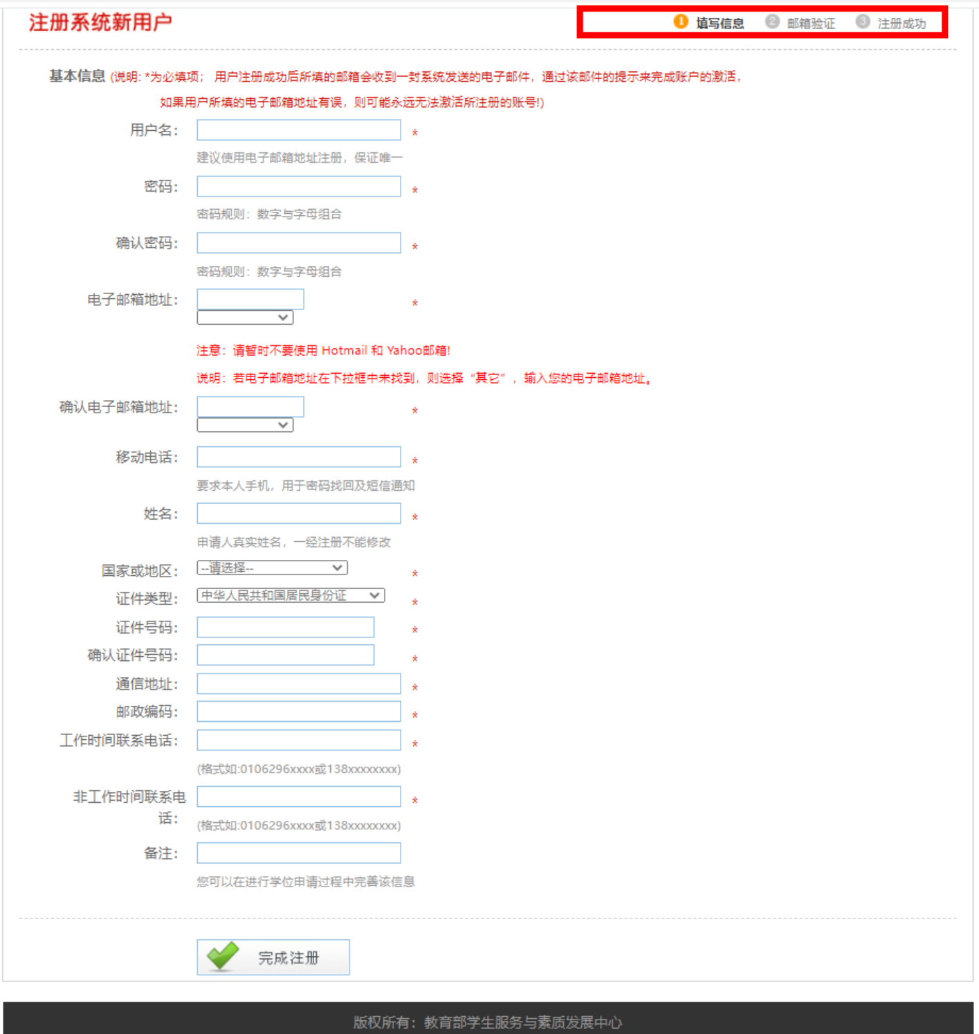 之前已经完成注册,但未提交学位申请或尚未参加过现场信息采集的同学可直接进入下一步。