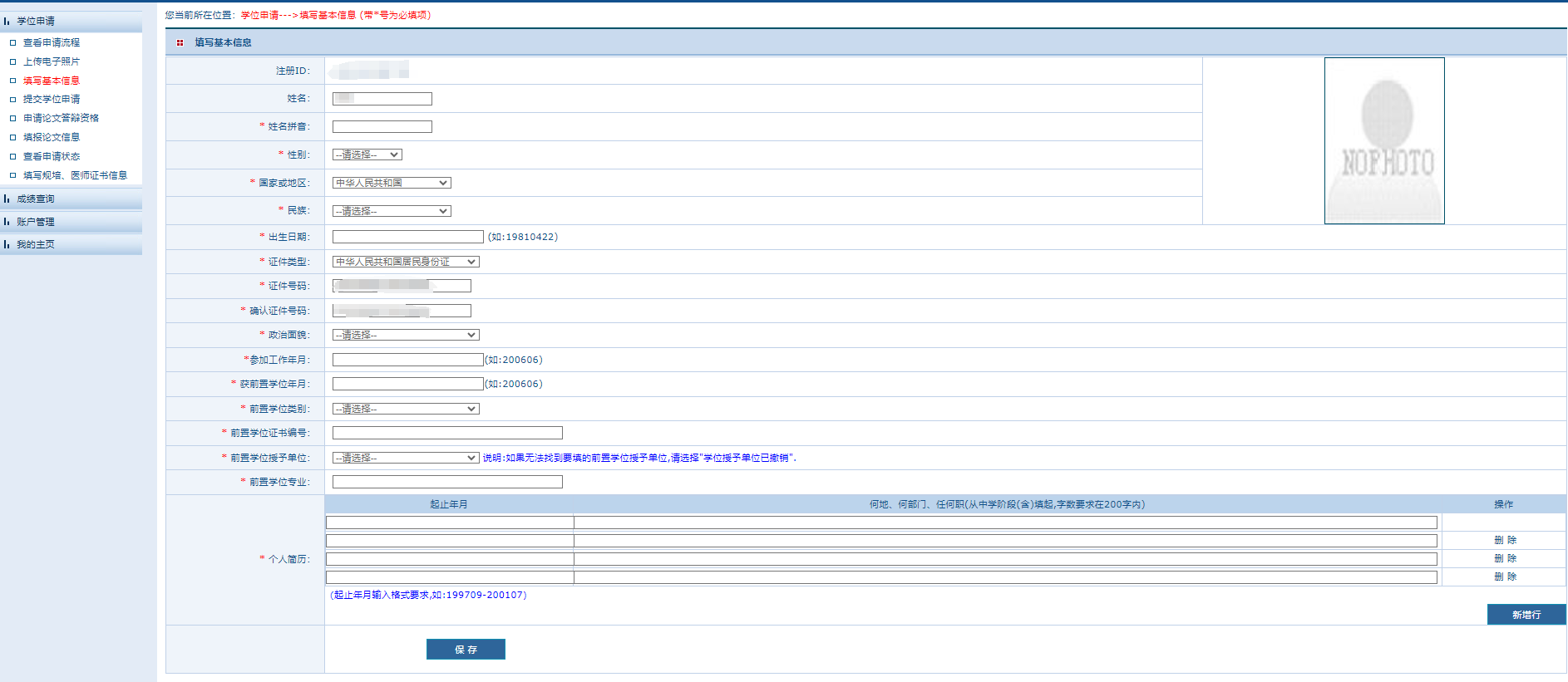 前置学位【注意是学位证,不是毕业证】的信息请严格按照证书填写(获学位年月、证书编号、前置学位单位等);