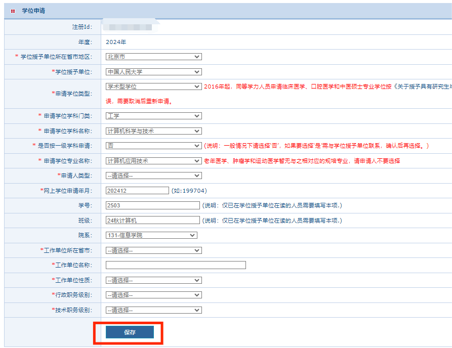 网上学位申请年月:默认为当前月(不要修改)