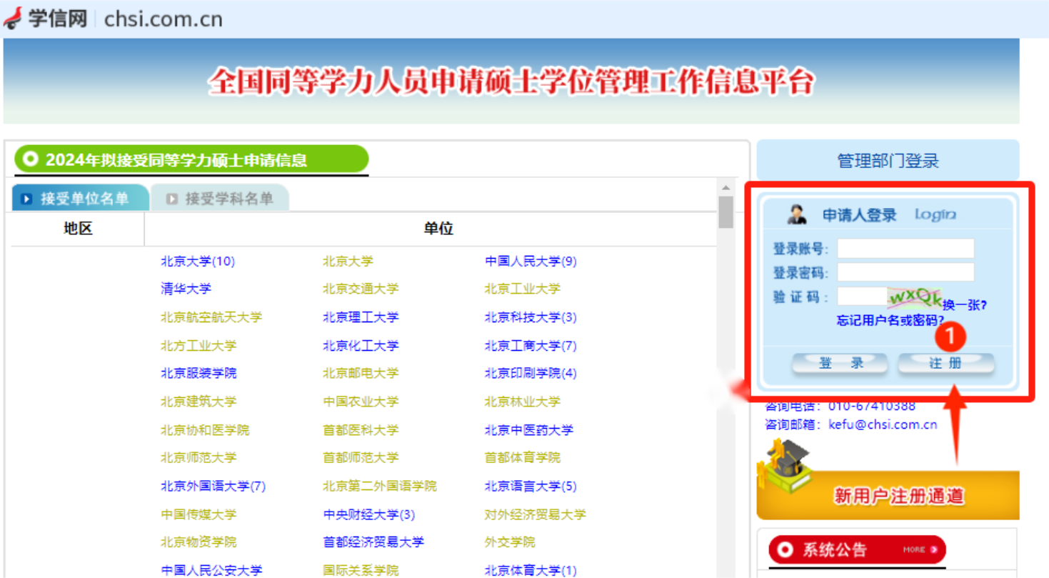 同等学力人员申请硕士学位管理工作信息平台注册步骤