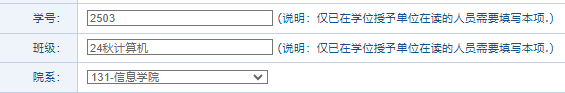 班级:填写年级+专业,例:2024秋计算机应用技术