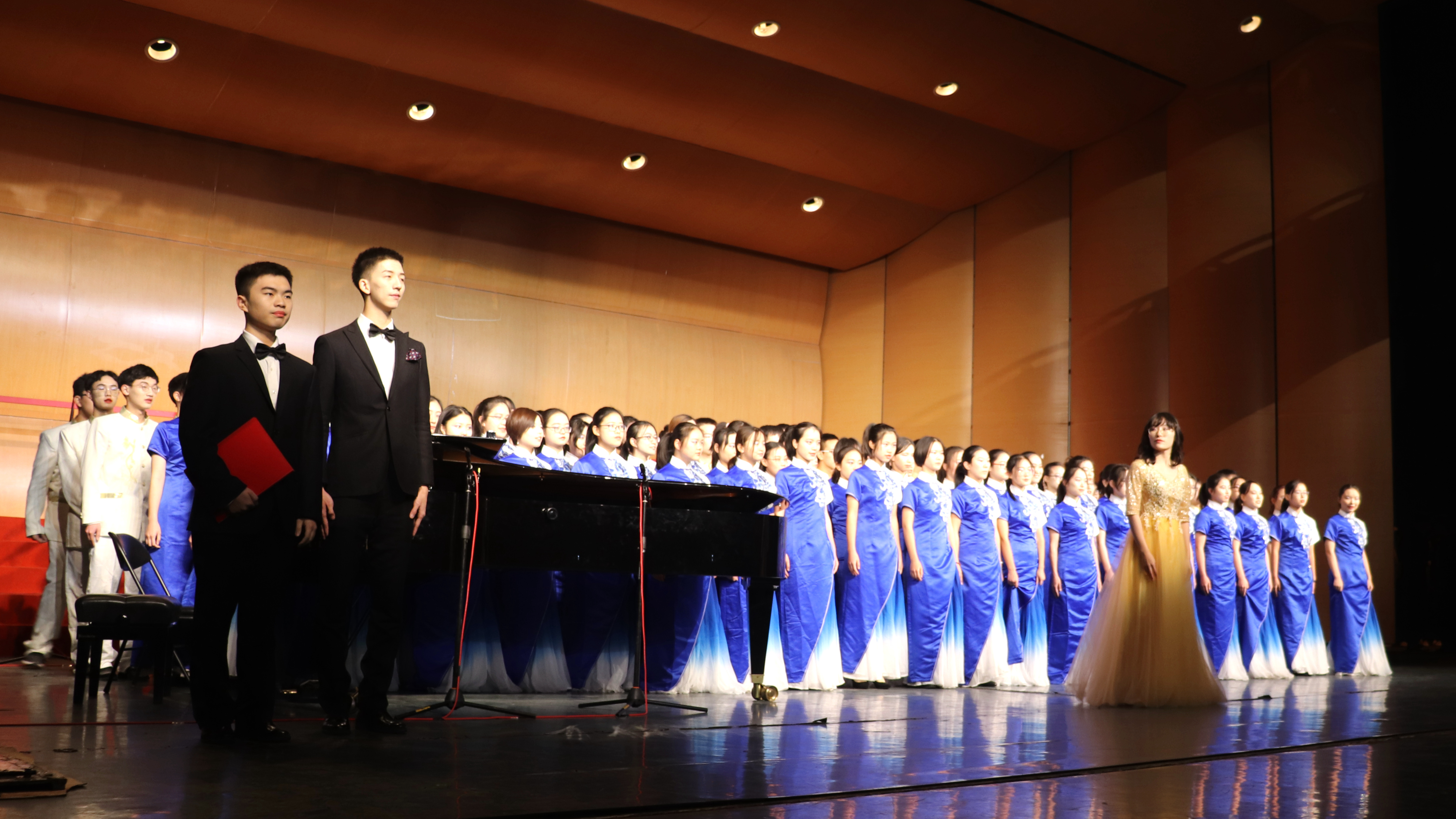 2019年12月8日,bat365在线平台登录第三十三届“一二·九”合唱音乐节在如论讲堂顺利举行。2019级信息学子与文学院、理学院学子携手登台,共唱梦想,获A组铜奖第二名。