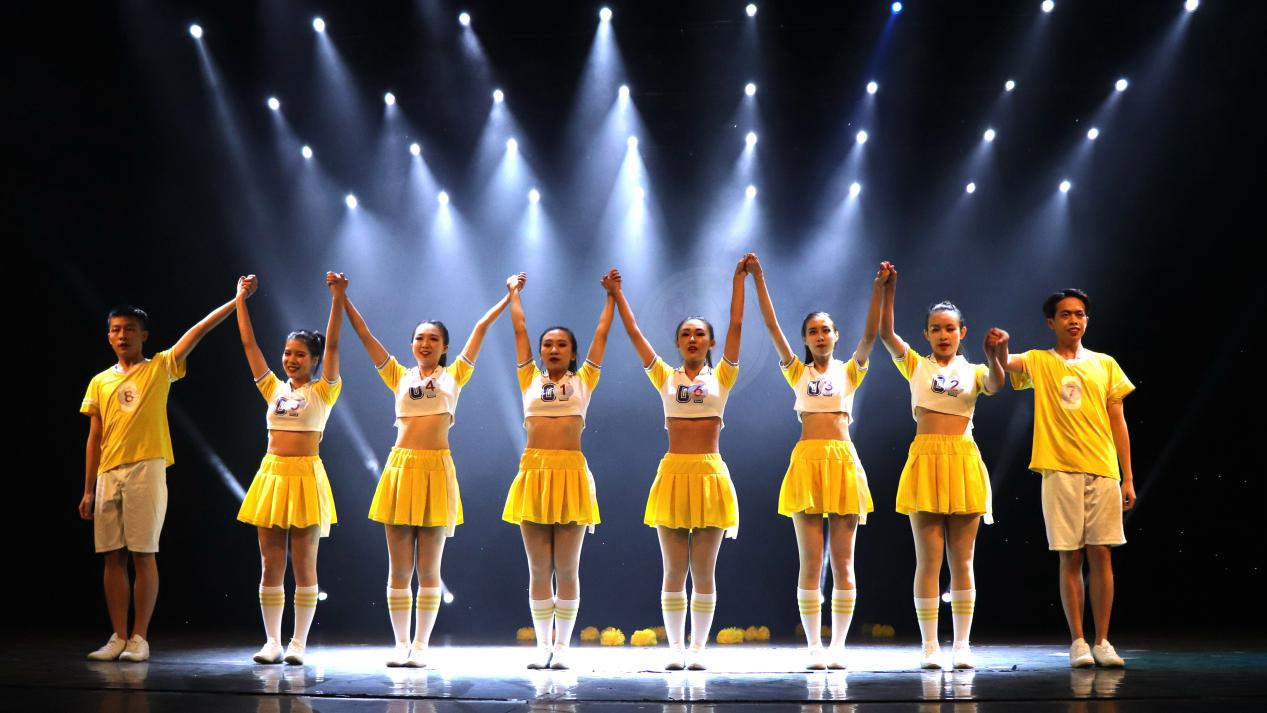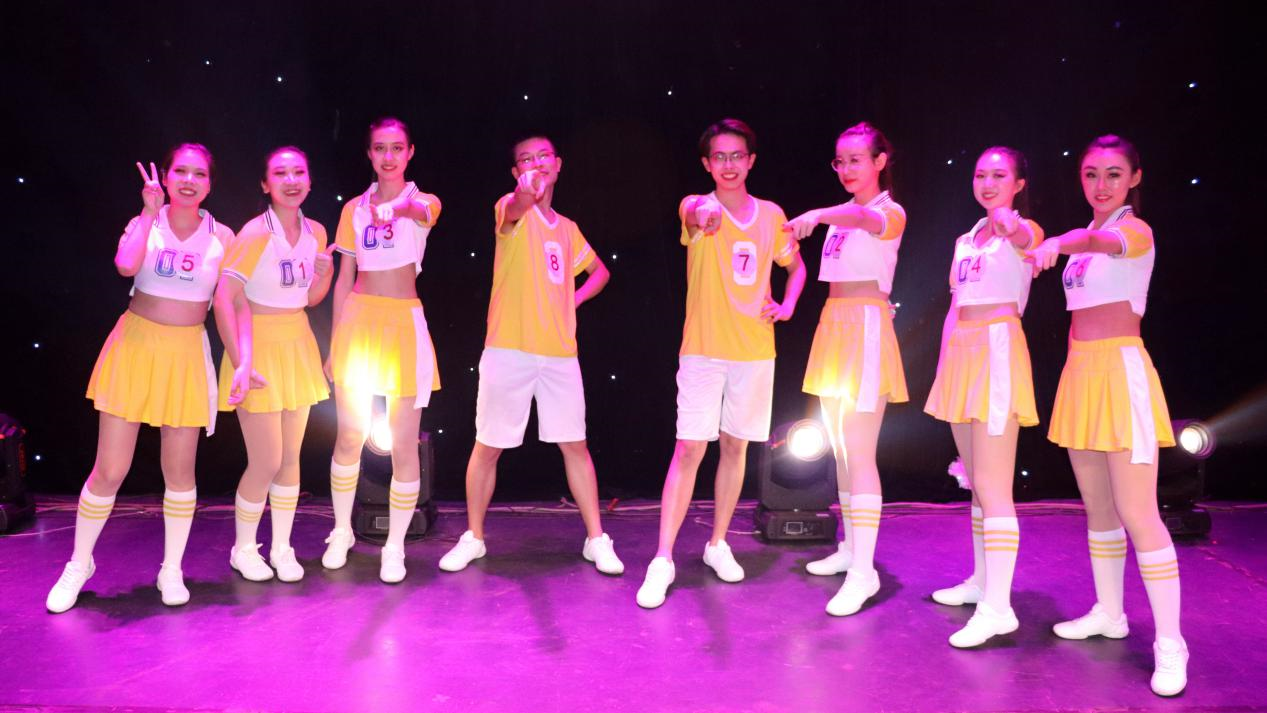 信息历史联队作为第八支队伍上台表演节目,他们穿着黄白相间的啦啦队服,静静等待着在音乐响起的那一刻,展现自己的青春与活力。音乐响起,队员们的舞蹈整齐而不僵硬,活泼而不夸张,黄白色的队服在聚光灯下显得金光闪耀,仿佛青春的阳光一般光芒四射。当音乐渐渐消息,队员们致观众们以最真诚的笑容,随后列队鞠躬整齐离场。