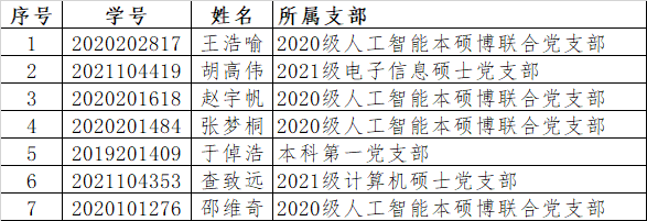 为认真贯彻发展党员工作“控制总量,优化结构,提高质量,发挥作用”的方针,进一步加强对发展党员工作的民主监督,严把发展党员“入口关”,提高学员培养质量,根据学校党委相关规定,现对已参加此批次党课学习小组且单项、综合均考核合格的学员名单进行公示,以听取党内外群众意见。
