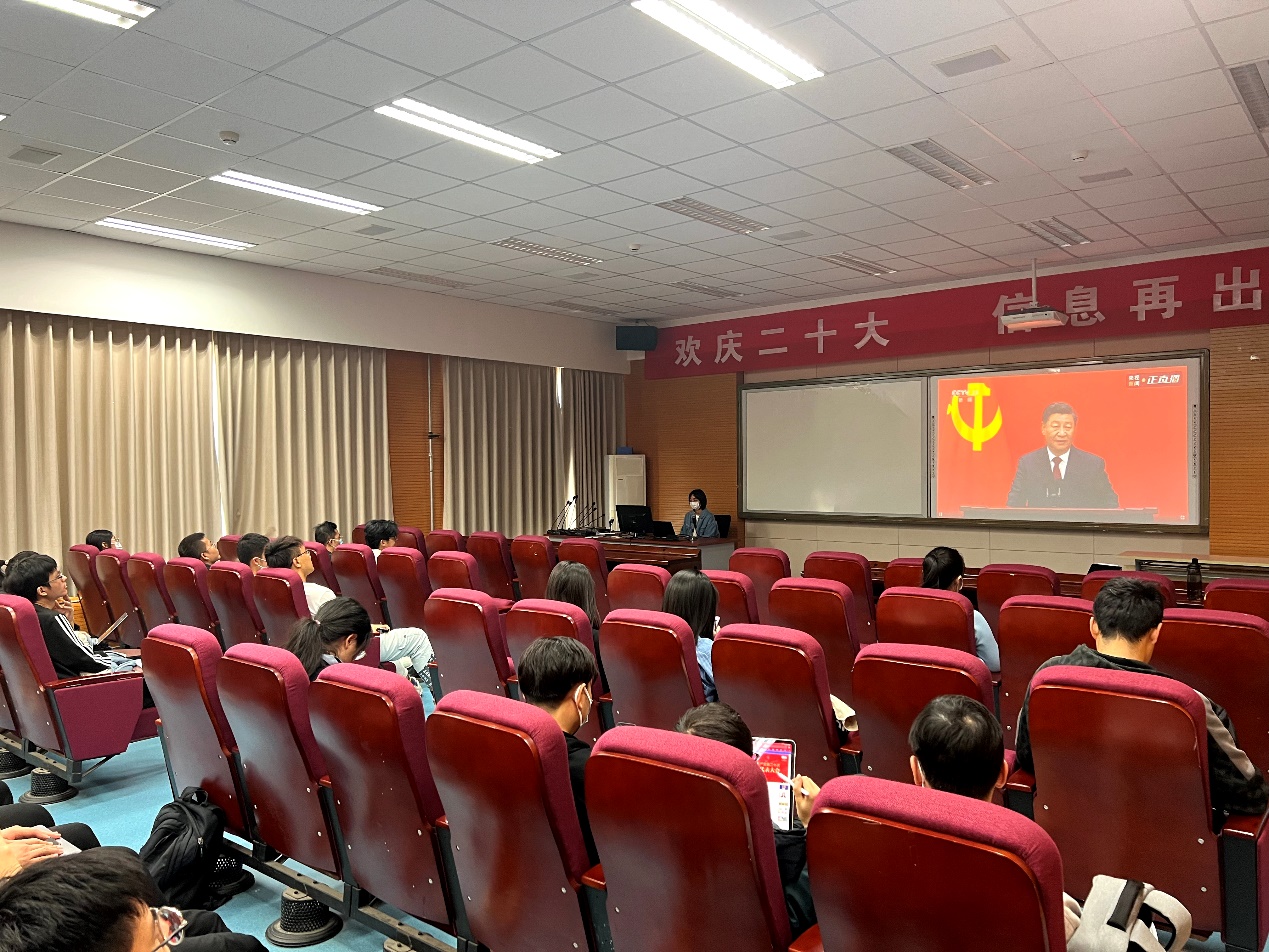 bat365在线平台登录党委组织师生在信息楼四楼报告厅集体观看中国共产党第二十届中央政治局常委同中外记者见面会的现场直播,深入学习习近平总书记的重要讲话。
