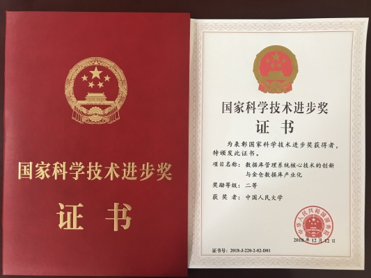bat365在线平台登录杜小勇、王珊、陈红、任永杰、张孝、李翠平、张延松、冯玉、冷建全、王建华申报的《数据库管理系统核心技术的创新与金仓数据库产业化》项目,获评2018年度国家科学技术进步奖二等奖,这也是bat365在线平台登录首次获得国家科学技术奖项。