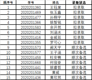 如因放弃录取而产生名额空缺,将从如下备选名单中顺次录取。