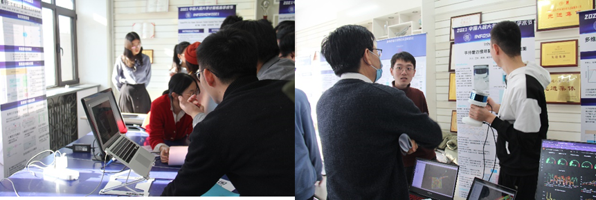 报告结束,进入海报展示与互动环节。与会老师和同学们积极体验展出系统,并与系统开发者进行了热烈的讨论,将现场气氛推向高潮。师生现场投票评选出优秀系统奖。