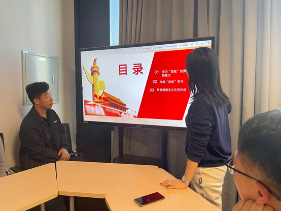 “以史为鉴可以知得失”,开展“四史”教育,是党中央立足党的百年历史新起点、统筹中华民族伟大复兴战略、动员全党全国人民满怀信心投身全面建设社会主义现代化国家而做出的重大决策。团支书讲到,要学好“四史”就要明白其内涵,弄清中国共产党为什么能、马克思主义为什么行、中国特色社会主义为什么好等基本道理,加深对党的历史的理解,加深对党的理论的认识。