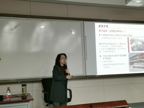 陈红向学院师生介绍了中国数据库界的杰出代表,重点讲解了萨师煊、陆宏钧、王珊三位杰出学者和教育家为中国数据库做出的突出贡献。她表示,中国数据库发展史同时也是中国数据库人的奋斗史,中国数据库的发展离不开勇于奉献的数据库人,一批批优秀的中国共产党员在其中起到了先锋模范作用。