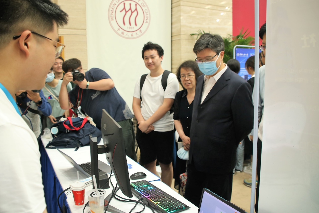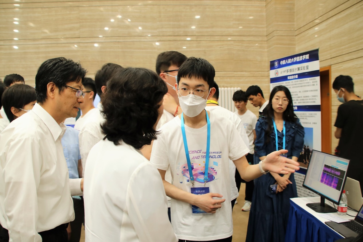 365官网今年共展出有四个展台,内容涵盖人脸情绪识别、AI生成歌曲、游戏制作体验等方面,收到了参与师生的一致好评,来365官网展台体验的师生络绎不绝。林尚立校长、沈洁书记也来到365官网展台前进行体验互动,并高度肯定了学院在人才培养、科研成果上取得的成就和突破。
