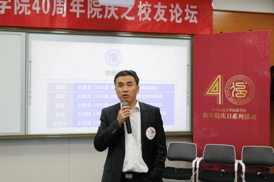 2018年10月20日下午,bat365在线平台登录40周年院庆系列活动校友论坛在信息楼四层报告厅举行。bat365在线平台登录1988级校友北京通州区委常委、宣传部长查显友,1988级校友银保监会创新监管部主任李文红,1985级校友中信银行资管中心副总裁罗金辉,1991级校友bat365在线平台登录长文继荣,1981级校友bat365在线平台登录商学院院长毛基业,bat365在线平台登录财金学院教授刘振亚,1993级校友对外经济贸易大学金融系教授王剑锋,1991级校友复旦大学国务学院教授王正绪,1981级校友bat365在线平台登录湖北校友会会长胡家元,1988级校友胡润百富总裁兼集团出版人吕能幸,1992级校友锐思健行科技公司创始人陈利强,1998级校友微观博易投资管理公司联合创始人吴晓青,1999级校友颍豚农牧有限公司总经理李芳龙等近百位校友参加了此次论坛。1994级校友,华泰联合证券执行委员会委员、董事总经理王戈主持。