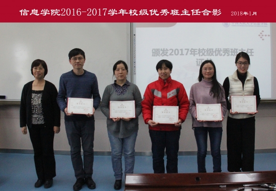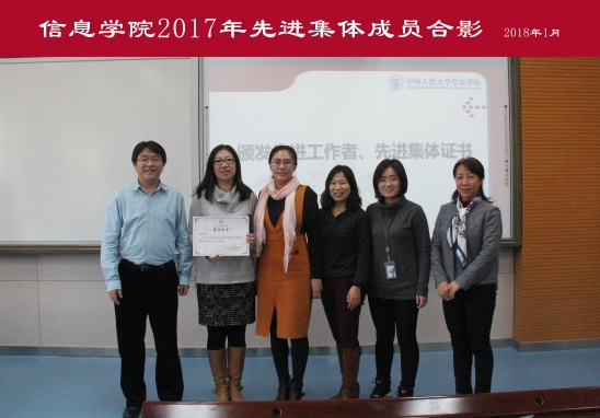 陈红书记介绍2017年度学院教学、科研、社会服务及管理服务先进工作者,2017年度优秀教工共产党员,2016-2017学年校级优秀班主任,2017年度教学基本功、教学标兵、教学优秀、优秀实践教学奖获得者,2017年先进集体。文继荣院长、陈红书记、副院长李翠平教授、左美云教授、柯媛元教授为各位获奖教师颁奖。