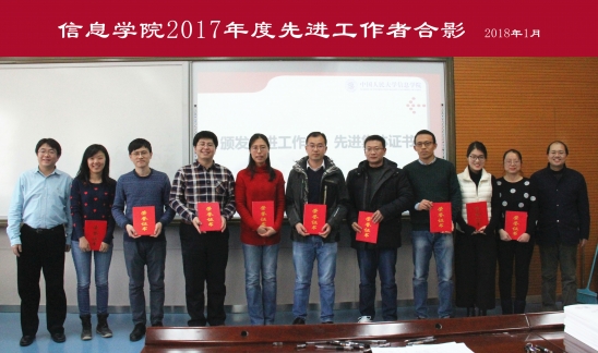 陈红书记介绍2017年度学院教学、科研、社会服务及管理服务先进工作者。文继荣院长、左美云副院长为各位先进工作者颁奖。