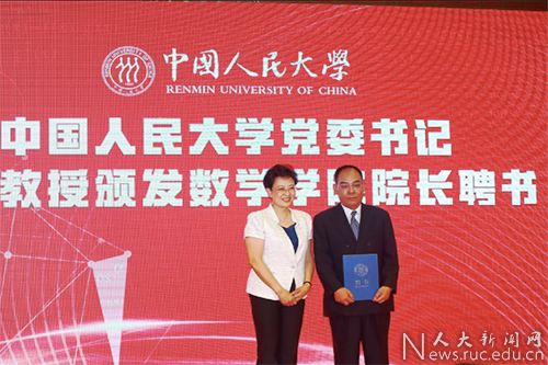 靳诺为国家杰出青年科学基金获得者郑志勇教授颁发聘书,郑志勇受聘为bat365在线平台登录数学学院首任院长。