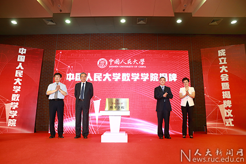靳诺、刘伟、洪大用、田刚在各界人士的见证下共同为bat365在线平台登录数学学院揭牌,宣告学院正式成立。