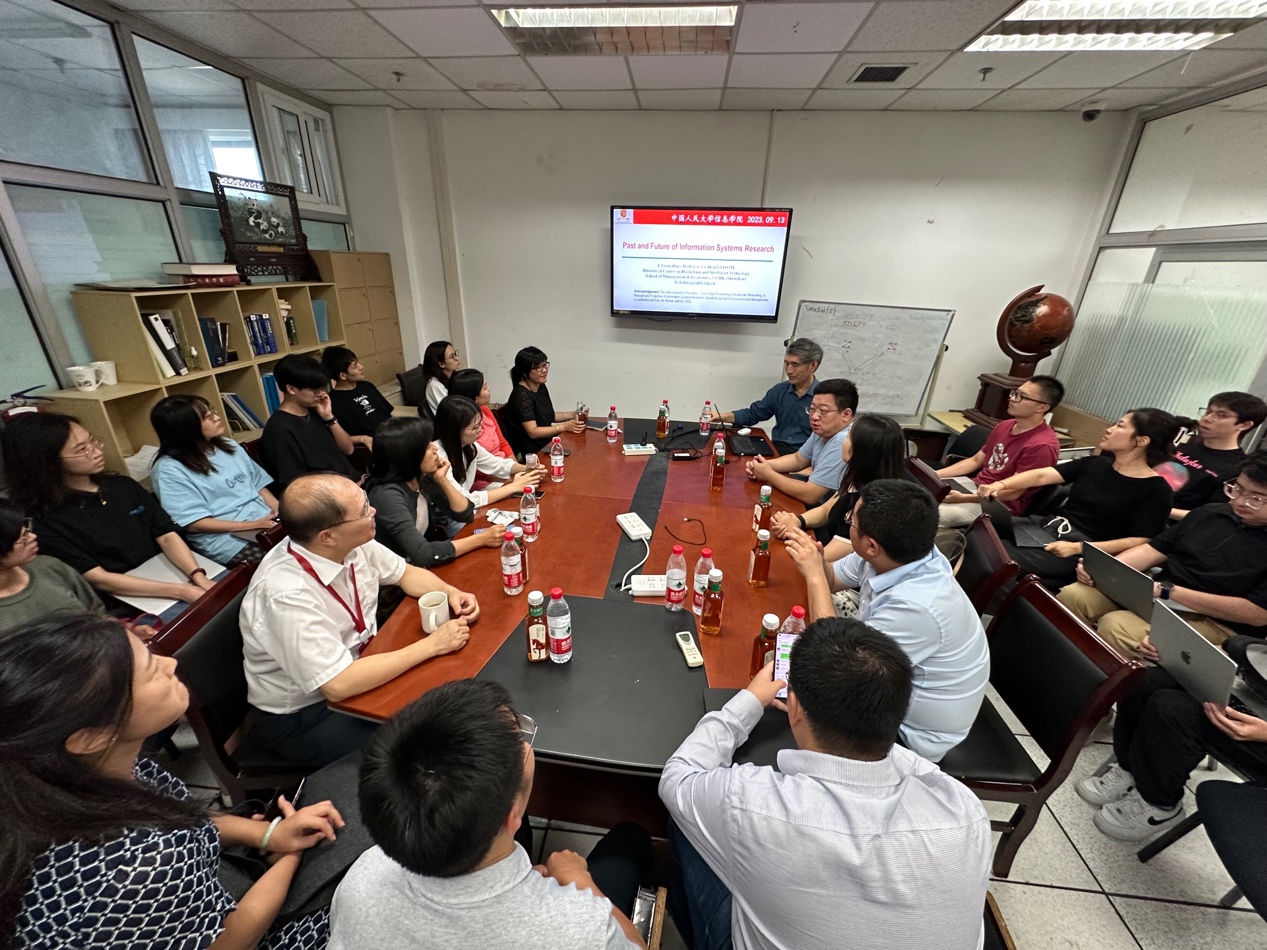 许伟教授对讲座内容做总结,指出本次讲座是一次对方法论和信息系统流派的深入讨论,通过有组织的科研,激发老师和同学认真思考信息系统自主知识体系建设和中国影响(China impact),并再次感谢赵建良教授的来访。