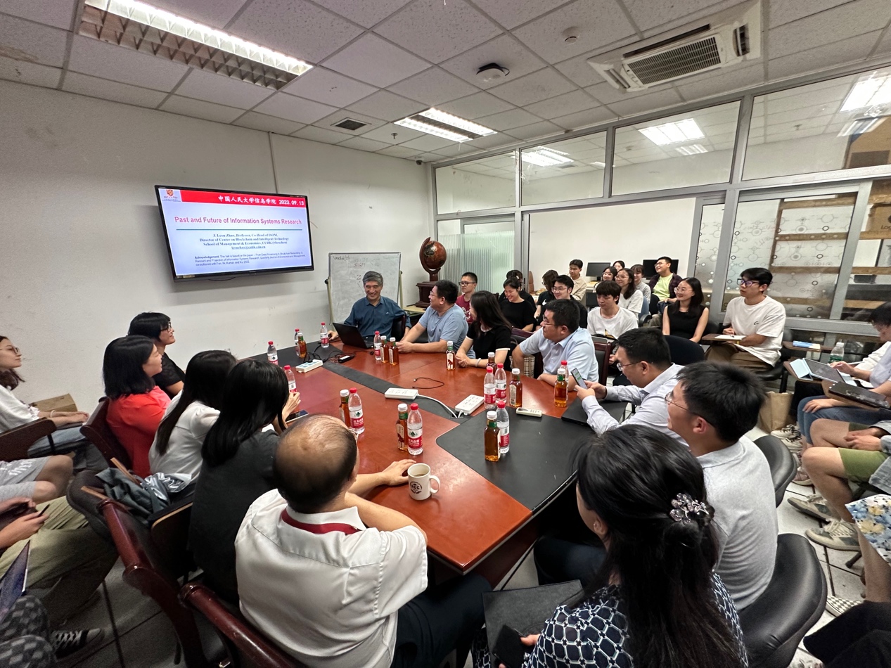 报告最后,与会教师就信息系统核心身份、信息系统领域自主知识体系建设以及信息系统学科未来发展等重要信息系统领域相关问题和赵建良教授展开了热烈讨论。赵建良教授指出,学科的自主知识体系建设是一个非常困难的问题,不仅仅是信息系统这个领域,其他领域如经济学和金融学,同样面临着研究内容交叉、研究领域界限模糊的问题,要建立自主知识体系需要长期积累,不是一朝一夕的事情。左美云教授也指出,要结合中国实际,树立文化自信,构建一套中国的、自主的、国际认可的学科自主知识体系。