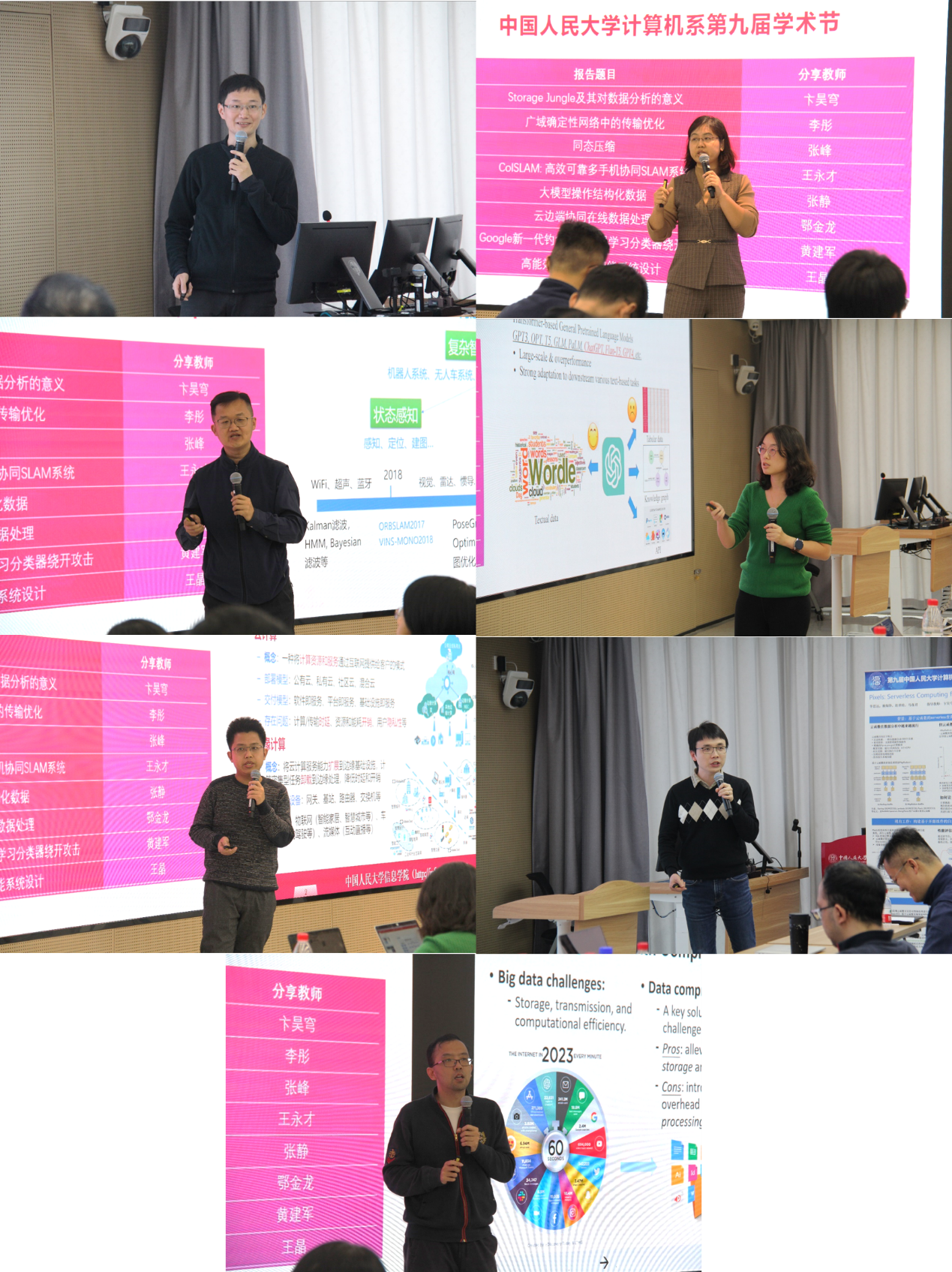 在下午的学术分享环节,计算机系7位老师逐一介绍了自己所在实验室最近一年的代表性科研成果,内容涵盖信息安全、人工智能大模型、数据存储、多机协同、体系结构等多个领域,展示了计算机系师生研究主题的深度和广度,并与大家共同探讨最前沿的科技发展趋势。