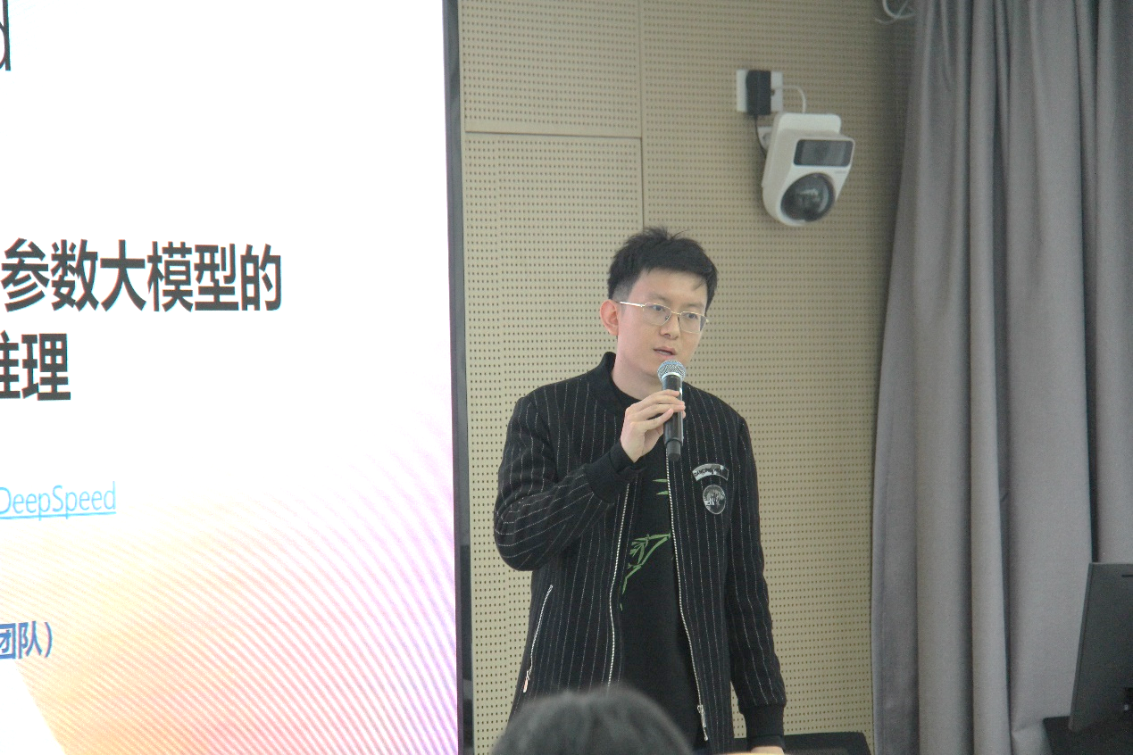 上午的专家报告环节,学院邀请了太极图形首席研究科学家刘天添博士、中科院计算所编译团队负责人崔慧敏研究员、清华大学集成电路学院胡杨副教授、微软DeepSpeed首席研究员郑祯博士四位专家分别从生成式AI、底层优化、芯片架构、分布式训练四个方面对人工智能大模型训练全过程的优化思路进行了介绍。