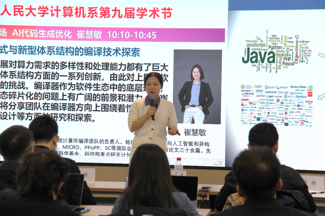 来自中科院计算所的崔慧敏研究员表示,人工智能的发展对算力的多样性和处理能力都有了巨大的需求。编译器作为软件生态中的底层环节,在解决上述问题上有广阔的前景和潜力。崔慧敏博士分享了其团队在编译器方向上围绕性能分析与优化、软硬件系统设计等方面的研究和探索。