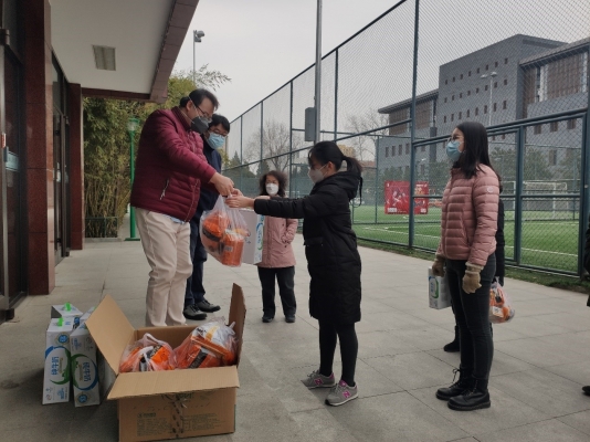 随后,学院领导给留校的同学们分发了口罩、消毒液、洗手液等防疫用品和牛奶、香肠等生活物资,并向同学们强调,有任何困难一定要及时向学院反馈,学院会努力做好同学们坚强有力的后盾,为同学们排忧解难,做好各项服务。