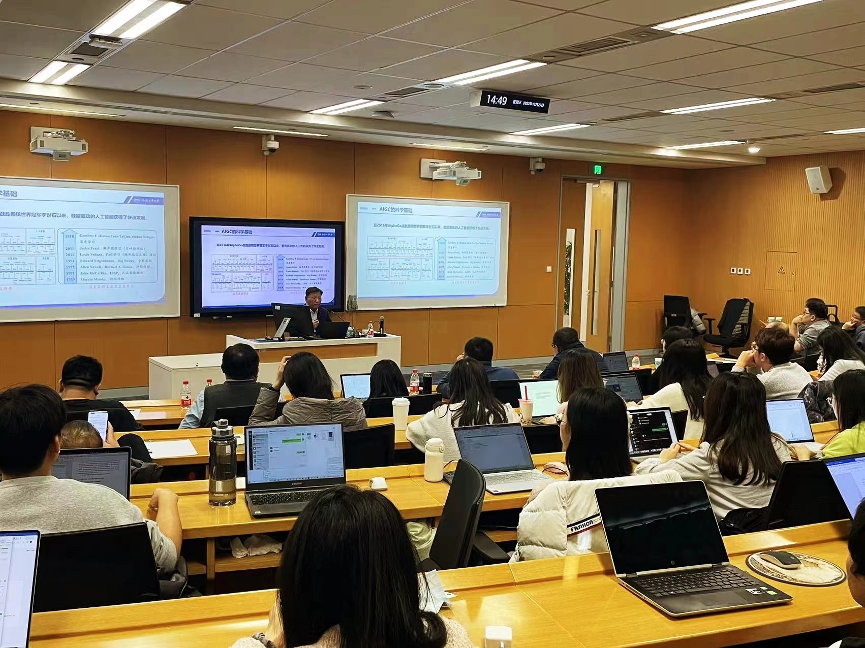 报告后交流环节,杨院士与杜小勇教授、龚新奇教授等师生就AIGC对硕博士研究生培养的影响展开了深入讨论,交流分析未来学生应该具备的科研能力。杨院士进一步分享了他对于中国AIGC发展的展望,表达对中国学者攻关尖端科技实现突破性创新的期待。
