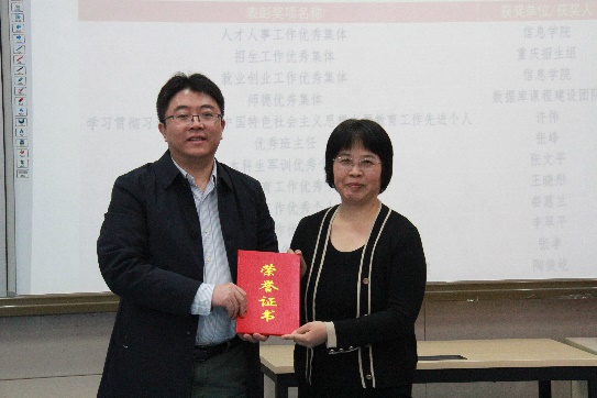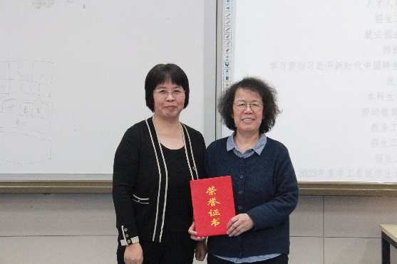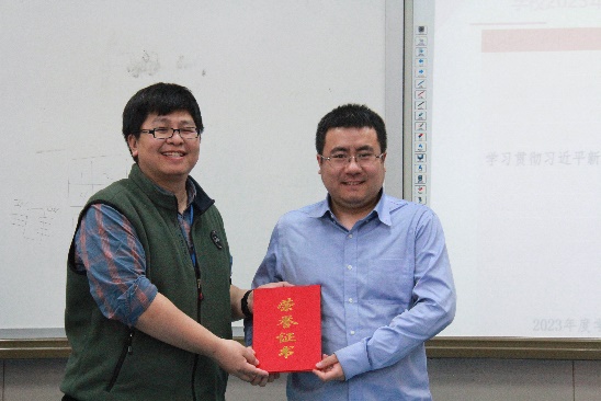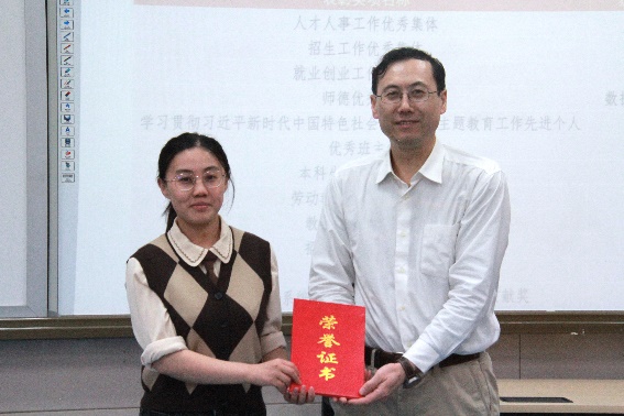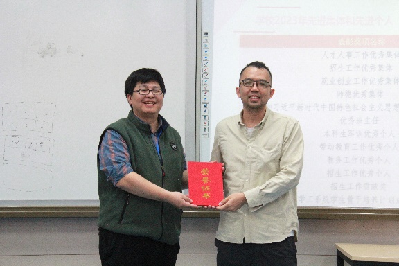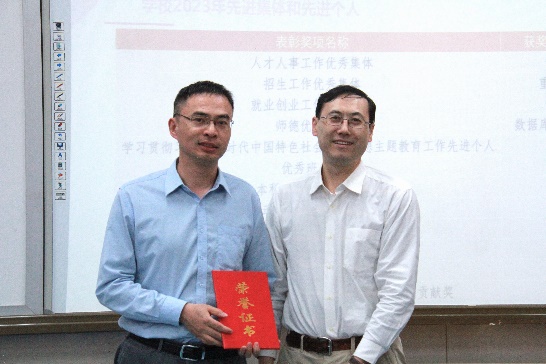 会议还通报表扬了2023年度获评学校和学院先进的个人与集体,学院领导班子成员向获奖对象颁发荣誉证书。