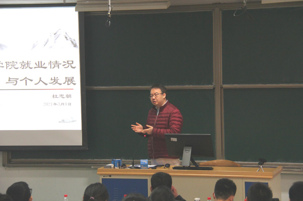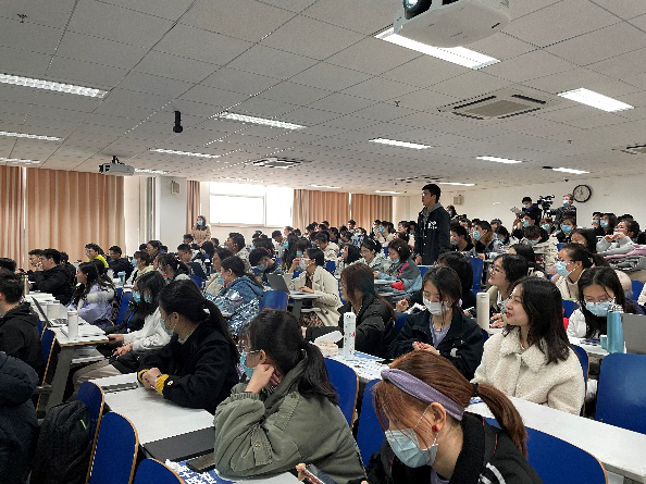 bat365在线平台登录党委副书记杜忠朝从学生比较关心的就业、保研方面向同学们做了介绍。杜忠朝老师向同学们展示了近几年学院的保研和就业方向数据,让同学们不用过于担心毕业后的去向问题。同时,杜忠朝老师还向同学们介绍了“本科生进实验室”活动,鼓励同学们在本科尽早开始做科研。