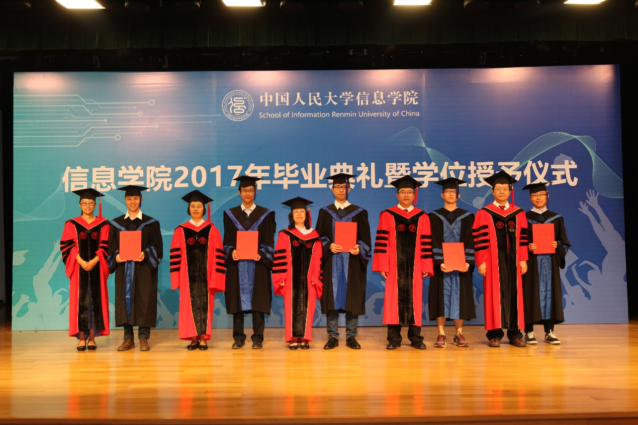 bat365在线平台登录院长文继荣教授宣读《bat365在线平台登录关于授予学士、硕士学位的决定》。bat365在线平台登录前院长王珊、学术委员会成员及领导班子依次为bat365在线平台登录2017届本科毕业生、硕士毕业生颁发学位证书、授予学位。