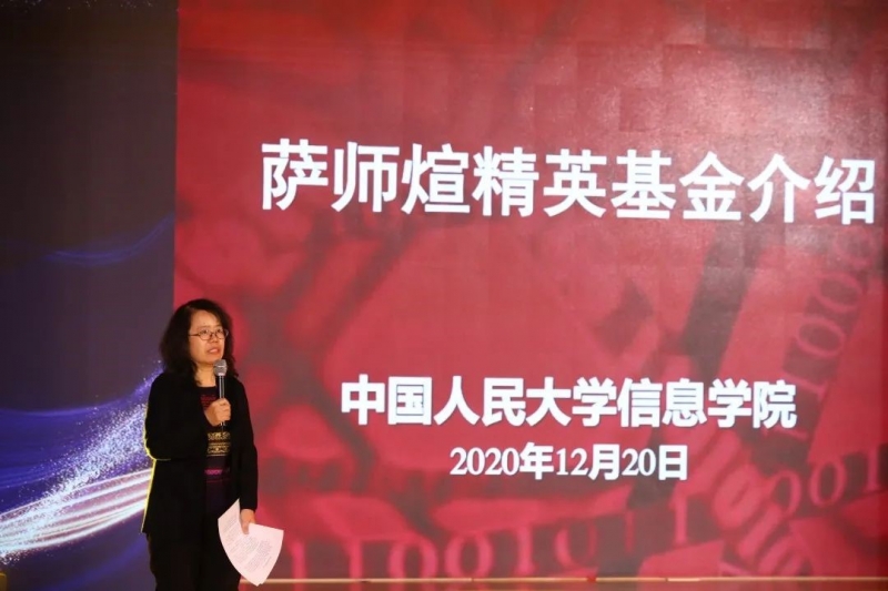 陈红教授代表萨师煊精英基金理事会向在座嘉宾和同学们介绍了萨师煊精英基金的由来。她带领同学们缅怀先人,纪念为学院做出过重大贡献的萨师煊教授,并由此阐述萨师煊精英基金设立的初衷,让bat365在线平台登录2020级新生对萨师煊精英基金会有了更深入的了解。值得一提的是,截至2019年,萨师煊精英基金累计收到教师、校友以及社会各界人士捐赠超过200万。自2021年1月1日起,将由杜小勇教授任新一届理事长,同时授予王珊教授萨师煊精英基金理事会名誉理事长。