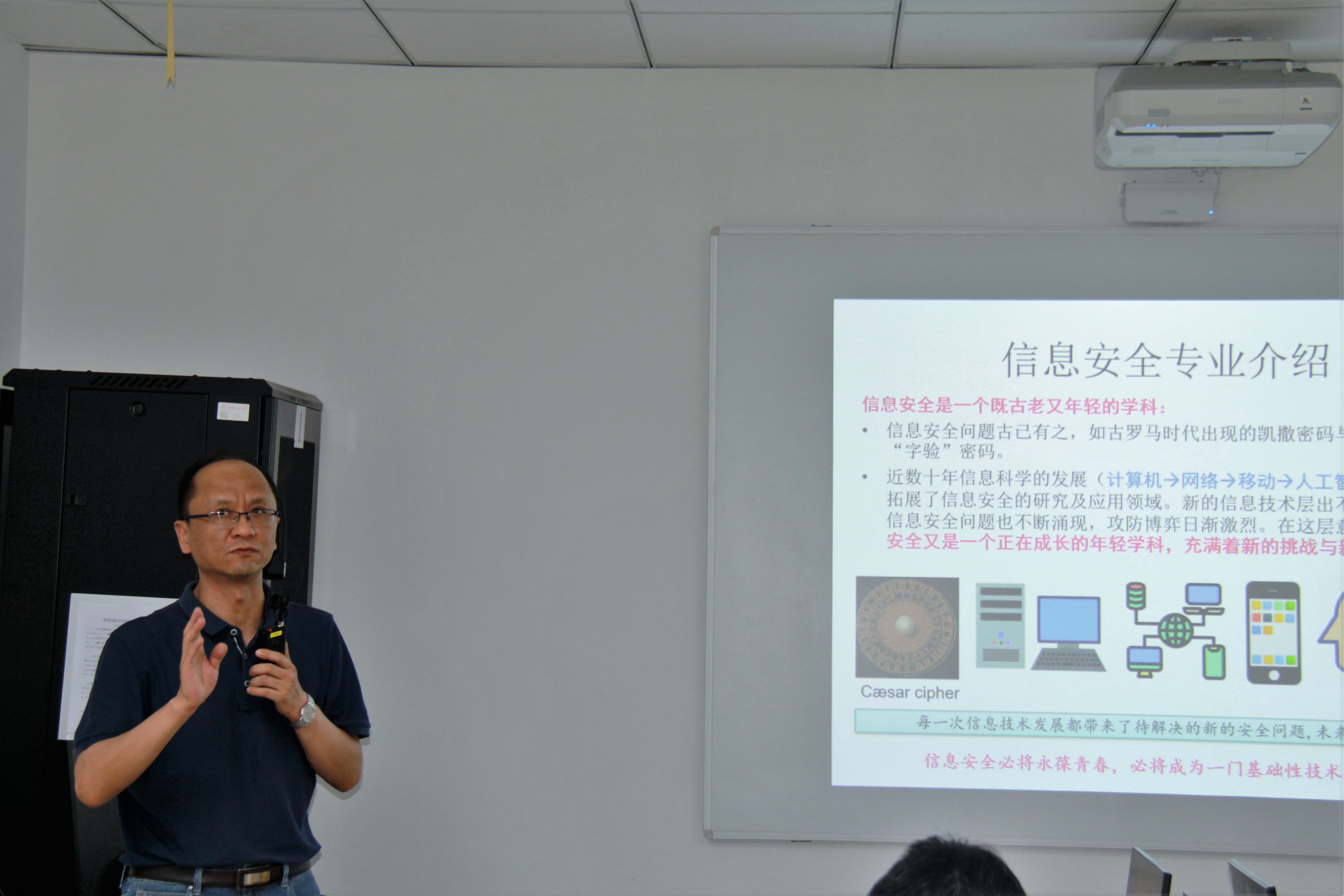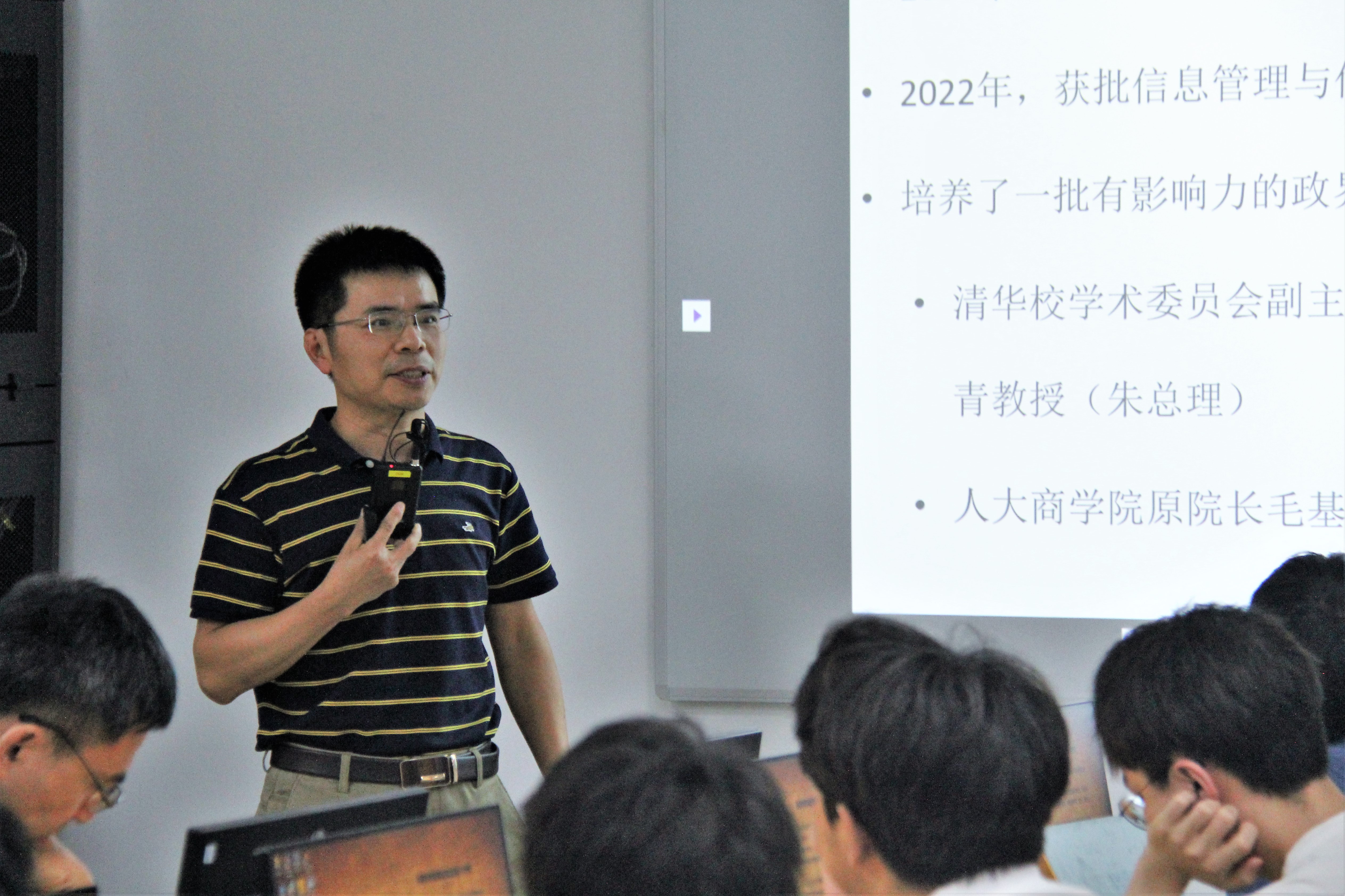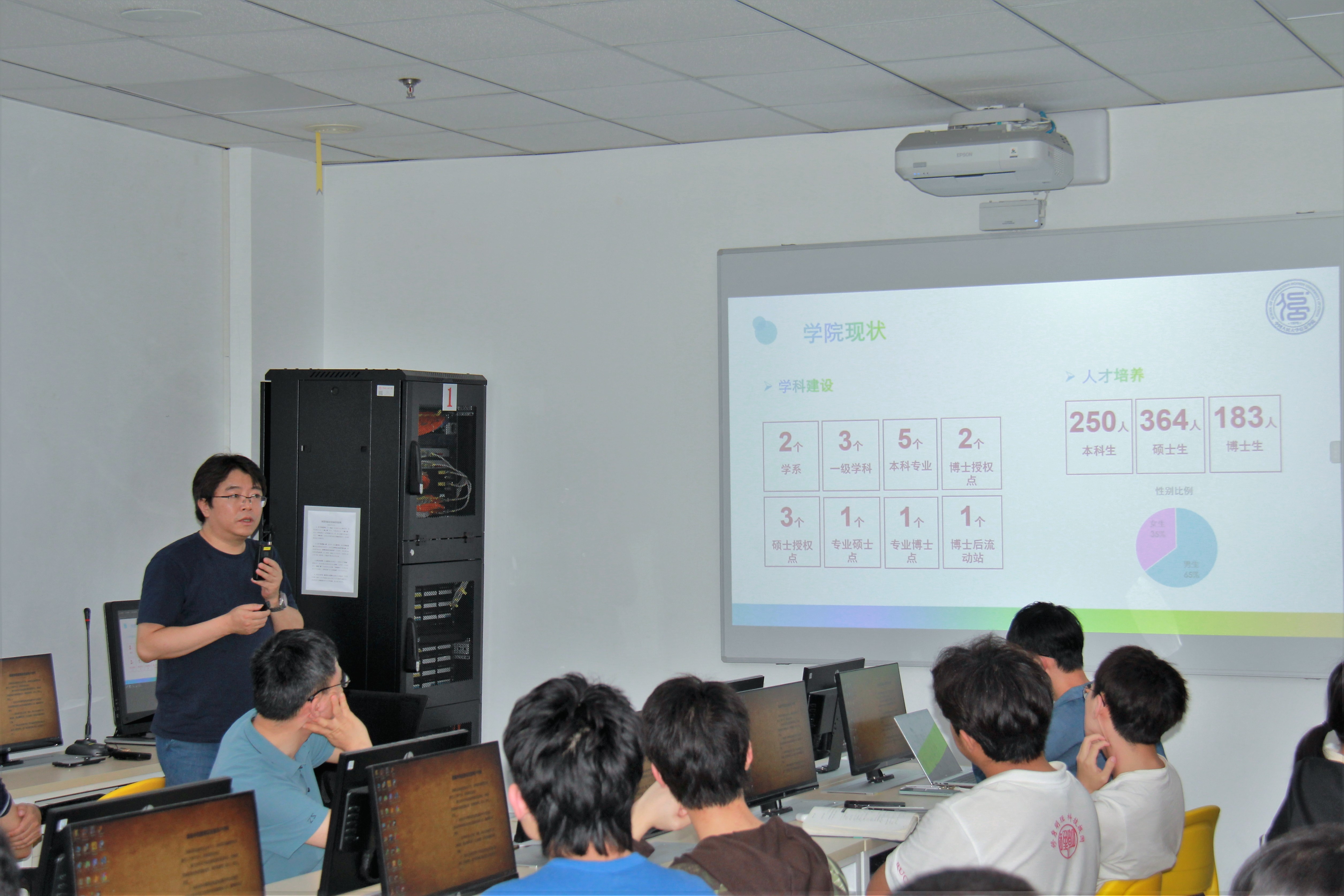 在各专业介绍环节,陈晋川、梁彬、王璞巍、余力依次上台介绍了学院计算机、软件工程、信息安全、数据科学与大数据技术、信息管理与信息系统专业的学科特色、研究方向、课程设置、培养方案等具体内容,增进了同学们对信息学各个专业的了解。