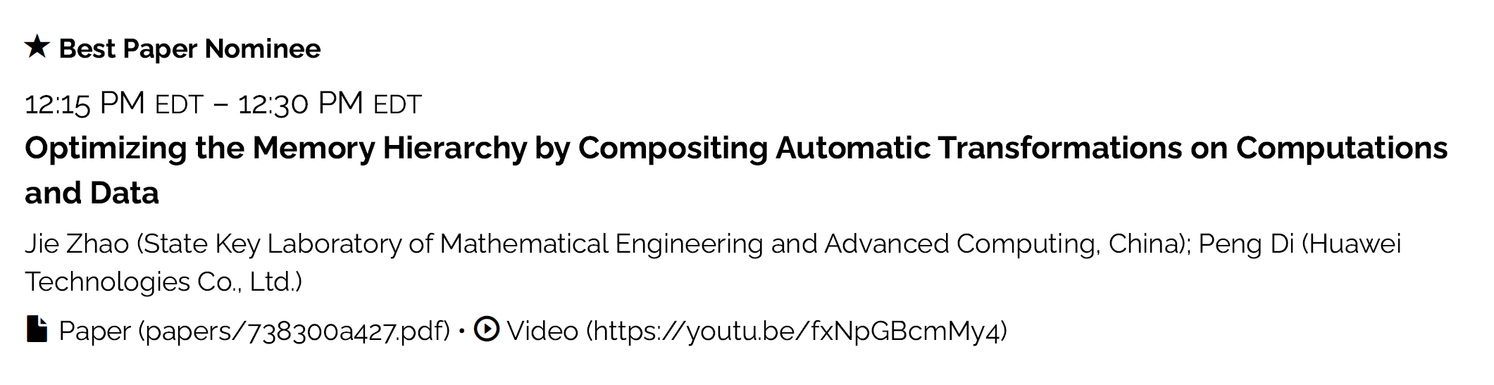 赵捷老师(个人主页https://yaozhujia.github.io/)于2023年9月新入职365官网bat365在线平台登录,任副教授一职。他的研究方向包括AI编译与芯片、高性能代码生成以及数值程序分析等,涵盖了高性能计算领域的多个子方向。在支撑国家战略方面,赵捷老师的研究聚焦国家重大理论和现实问题开展研究,致力于解决“卡脖子”配套基础软件开发,以第一或通信作者在包括ASE、MICRO、OSDI、PLDI等CCFA类会议上发表多篇文章。其中,发表在计算机体现结构定会MICRO上的文章被提名为该会议当年最佳论文。