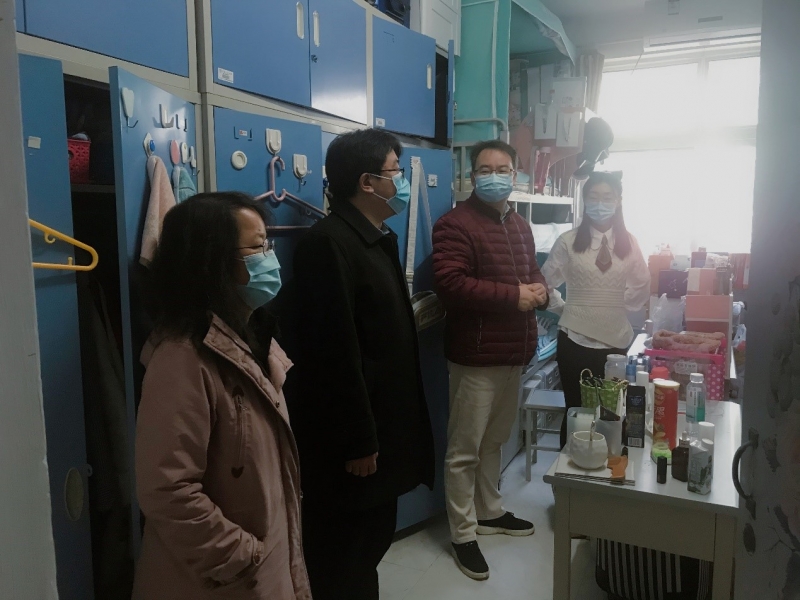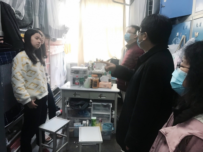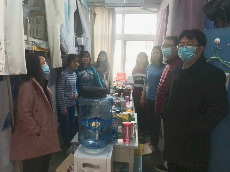 为保障学院学生返校工作顺利开展,及时了解学院学生返校后的实际需求,3月1日下午,bat365在线平台登录党委书记陈红,院长文继荣,副书记杜忠朝一行前往东风6楼学生宿舍,看望慰问返校的同学们。