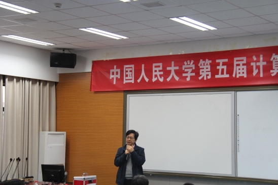 学院党委书记陈红教授致辞,欢迎各位企业专家的光临,简单介绍了计算机系学术节的由来和发展,并祝愿本次学术节活动的圆满成功。