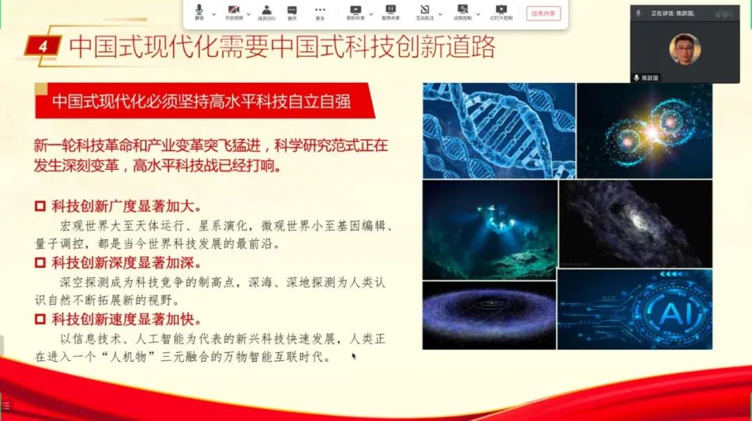 陈教授指出,走中国式科技创新道路,要求我们必须坚持高水平科技自立自强,必须找准科技创新中的“中国问题”。同时,科技创新需要人才,中国式现代化更需要人才,二十大报告对当代青年人才寄予厚望,“青年强,则国家强”,希望当代青年人奋发图强,砥砺前行!