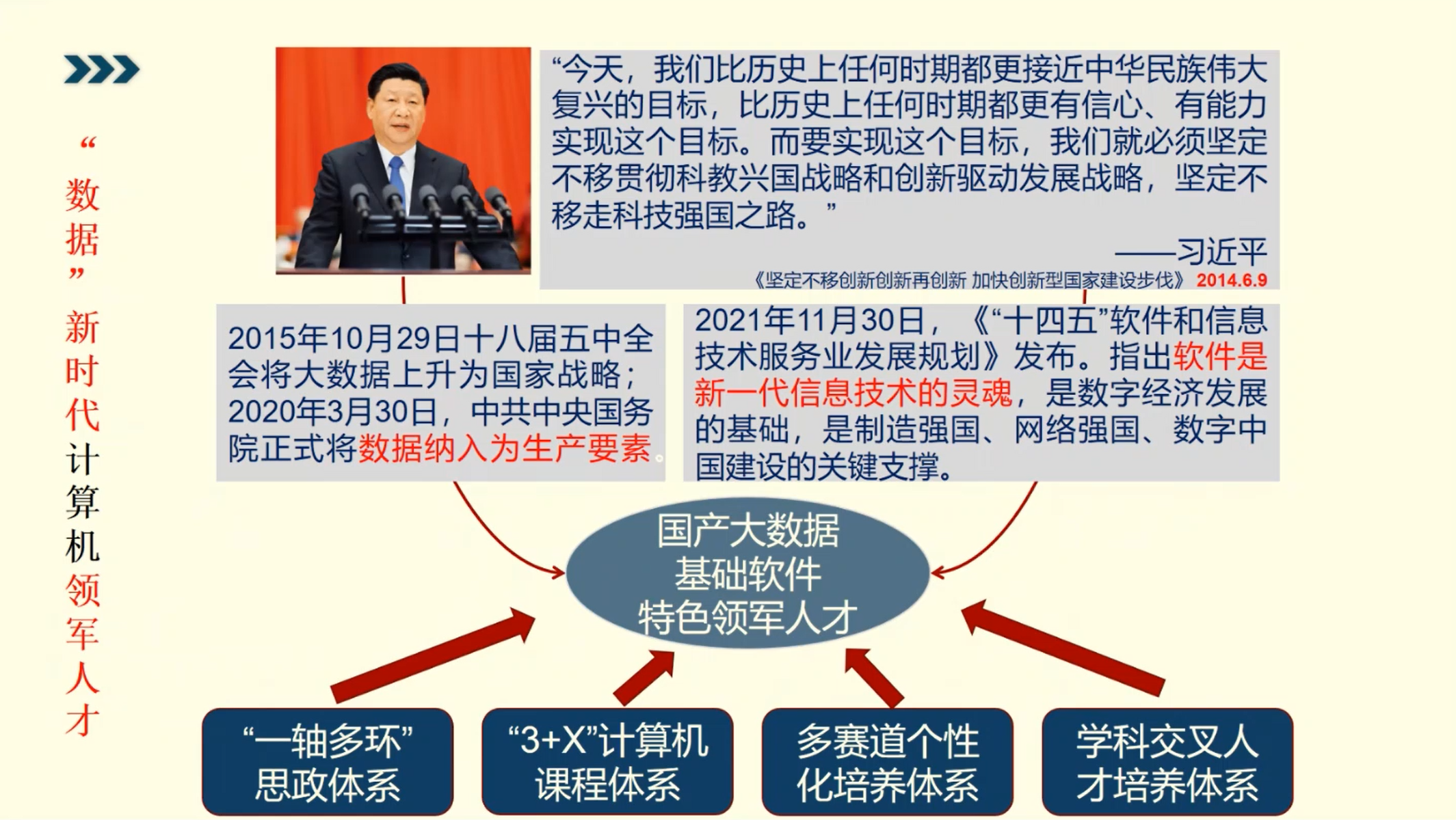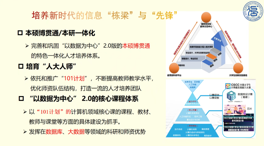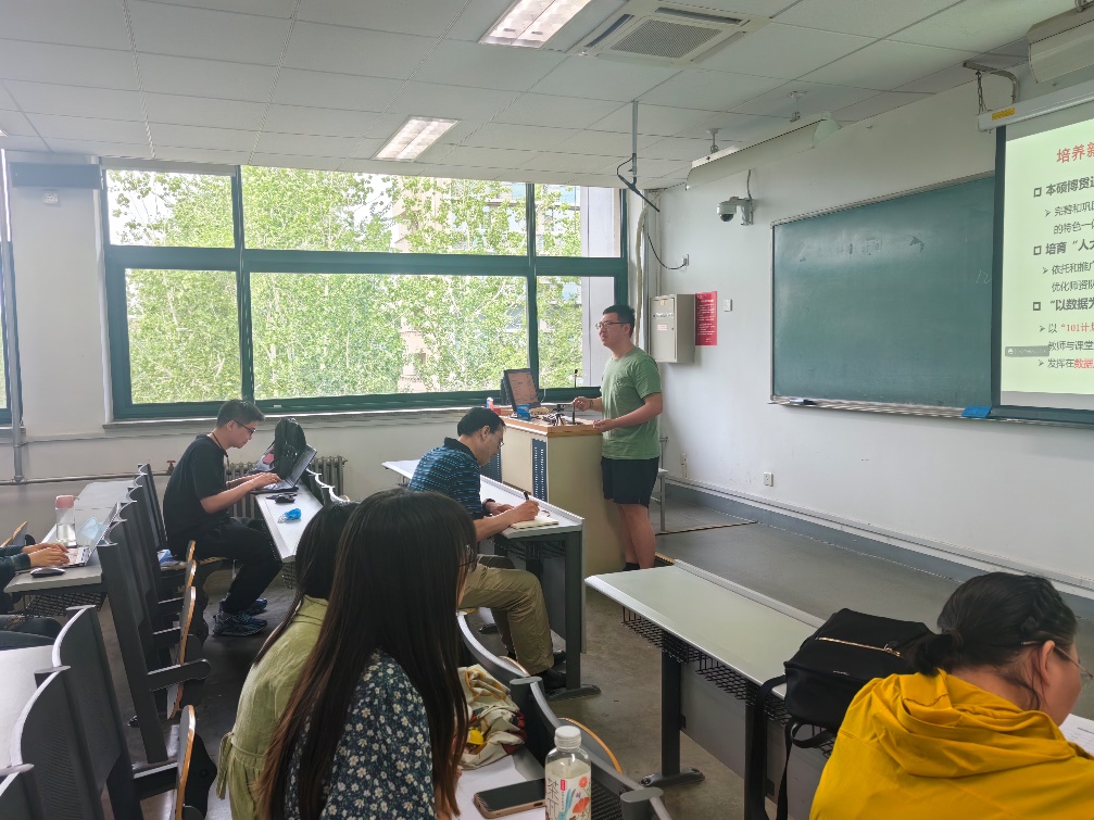 张孝首先带领党员共同学习了中国式现代化的时代要求,并从中国式科技创新道路和中国式现代化人才两个方面展开解读。接着张孝以学院开展的国产大数据基础软件特色领军人才的培养为例,从“一轴多环”思政体系、“3+X”计算机课程体系、多赛道个性化培养体系和学科交叉人才培养体系这四个角度展开介绍,分析了“科技、人才、创新”三者的内在逻辑联系,强调了人才资源对中国式现代化的重要性,鼓励信院师生党员将以中国式现代化实现中华民族伟大复兴的目标与个人的理想抱负紧密结合起来。