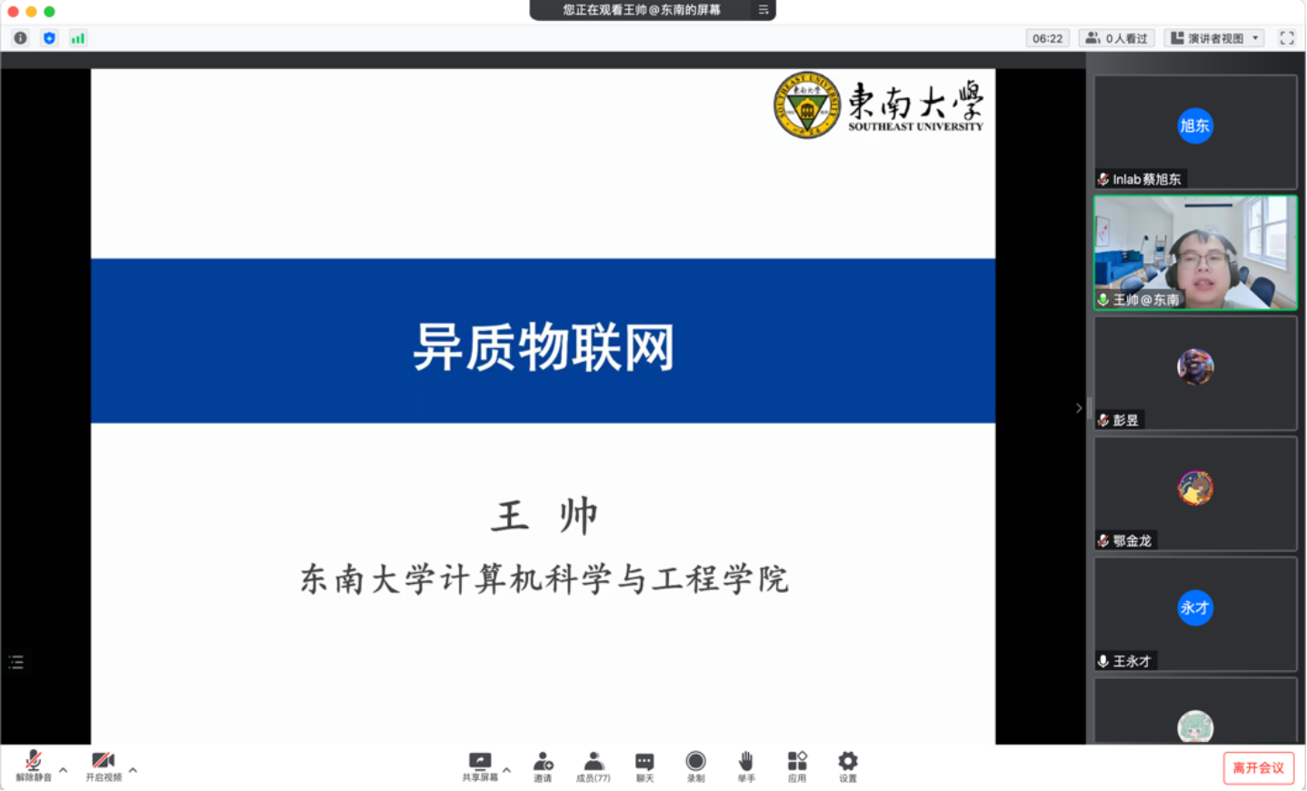 2022年10月26日星期三下午,bat365在线平台登录计算机系组织了“信息讲坛”的第九十讲—异质物联网泛在感知与深度融合。本次讲座由东南大学青年首席教授、国家青年特聘专家王帅教授在线主讲,bat365在线平台登录副教授王永才老师线上主持会议,校内外一百余名师生在线参加了本次讲座。