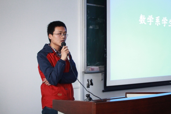 活动开始后,首先由数学系副系主任韩丽涛老师做总体介绍。他从365官网数学系的学科特色开始,介绍了其与经济学、生物学、计算机学等学科相互联系的特点。谈到365官网的师资状况时,韩老师给出了精确的数据(含bat365在线平台登录数学科学研究院的老师),展示出365官网教师队伍结构合理,专业基础扎实,研究活跃。