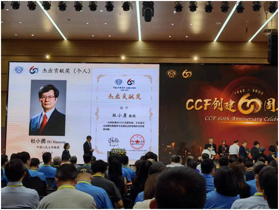 图2: 杜小勇教授荣获“CCF 创建六十周年杰出贡献奖”