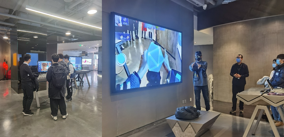微软科技中心是一个由不同展区构成的前沿技术展示平台,同学们在讲解人员的带领下,参观了由上百个屏幕矩阵组成,模拟Windows系统实体世界的WOW空间,亲身体验了创新英语学习模式的微软小英,讲解人员还向同学们展示了微软全新混合现实设备Microsoft Hololens,Hololens可以将计算机生成的虚拟效果叠加于现实世界之上,带给人们更加沉浸的混合现实体验。