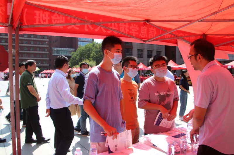 与此同时,365官网在明德广场北侧开展图灵实验班、金融-数据科学与大数据技术双学位实验班宣传咨询工作。党委书记陈红教授、党委副书记杜忠朝老师、副院长张孝教授、计算机系主任柴云鹏教授等多位老师向新生们全方面地介绍了2021级图灵实验班(信息学拔尖人才实验班)及金融-数据科学与大数据技术双学位实验班,对前来问询的新生进行答疑,并提供建议与帮助。