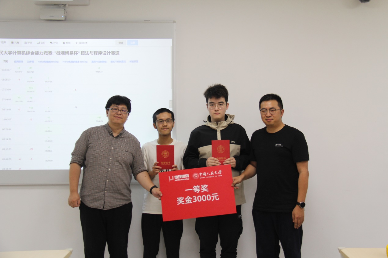 2024年5月12日,bat365在线平台登录计算机综合能力竞赛“微观博易杯”算法与程序设计比赛顺利举办。bat365在线平台登录党委副书记柴云鹏教授,1998级校友、北京微观博易私募基金管理有限公司周先生,bat365在线平台登录ICPC队教练孙辉副教授、bat365在线平台登录游伟副教授以及来自bat365在线平台登录、高瓴人工智能学院、统计学院等50余位本科生参加。本次比赛由bat365在线平台登录、明理书院联合主办,北京微观博易私募基金管理有限公司对比赛给予了大力支持。