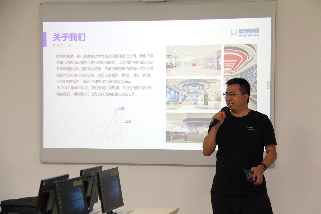 周先生代表赞助方微观博易公司发言,感谢学校给予机会和支持,感谢同学们积极参加这次程序设计竞赛,希望同学们能够保持这样的势头,加强学习、迎接挑战。周先生对微观博易公司进行了简要介绍,并欢迎同学们在未来加入微观博易,一同打造国内乃至全球顶尖的量化投资公司。