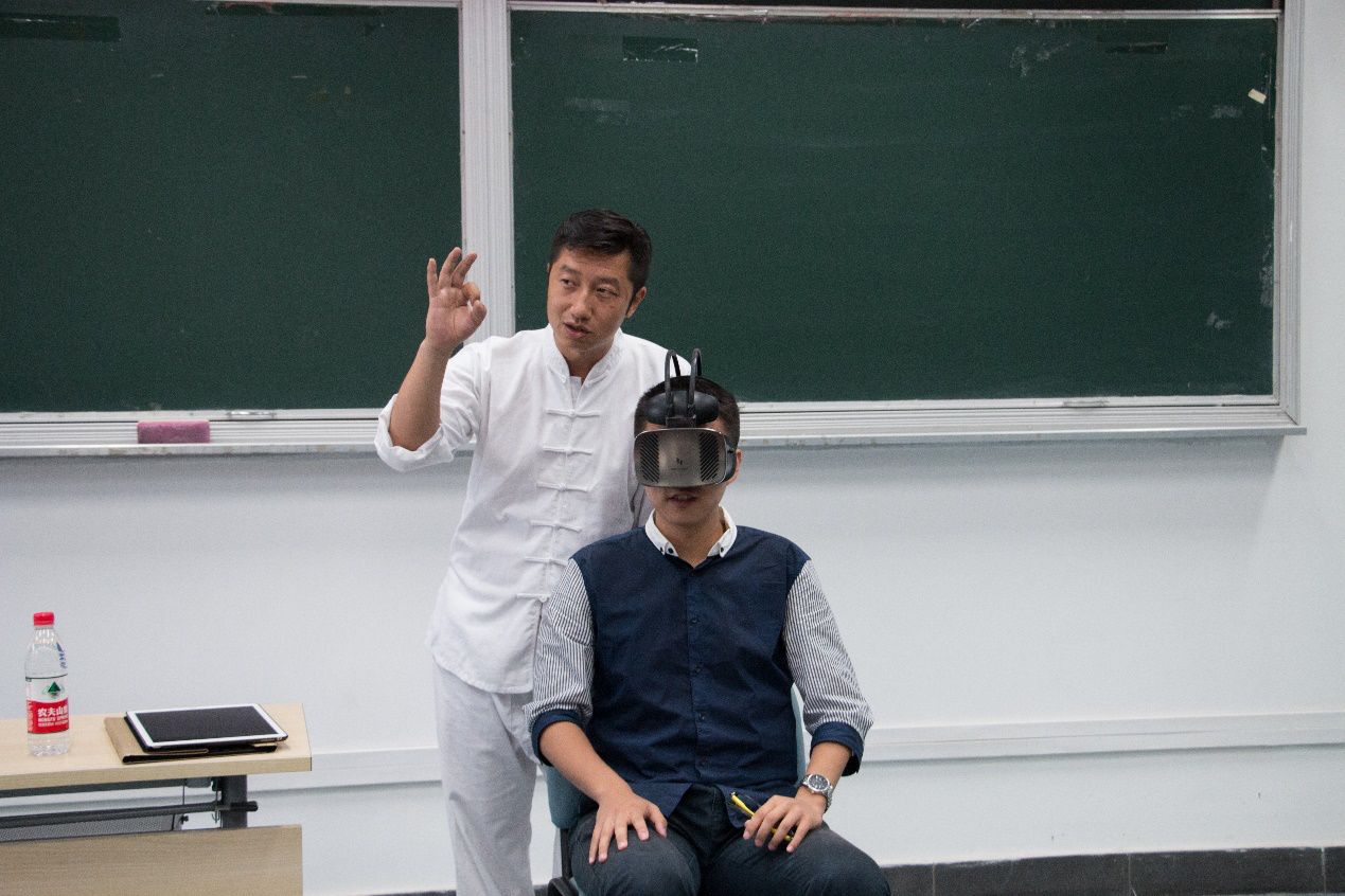 任赪在介绍移动互联网时,详细展示了操作通信系统及相关产品,并邀请同学们体验VR(虚拟现实)技术产品,并讲述了相关技术的发展情况和行业前景,分析其商业应用营利原理。任赪指出,移动互联网前沿技术发展方向是找到突破运行速度极限与网络速度极限技术,在此,他点出同学们应该具备一定的独立思考力能力,不要轻易被大量的信息蒙蔽。